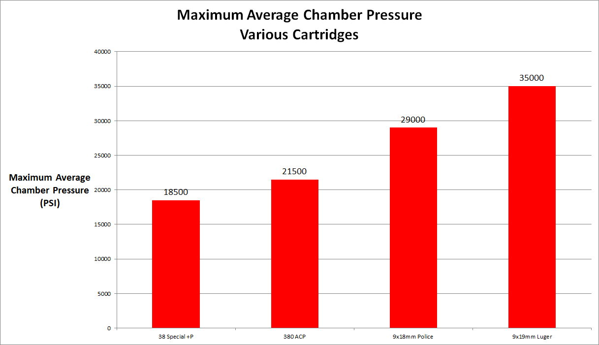 While outwardly-similar in appearance to the 380 ACP, the case capacity of the 9x18mm Police is 5% greater and the cartridge case thickness is identical to the 9mm Luger which allows loads considerably hotter than the 380 ACP to safely be used. The situation is similar to the difference between 38 Special and 357 Magnum—the latter has a longer and thicker case than the former, which allows higher pressures and notably better terminal performance.